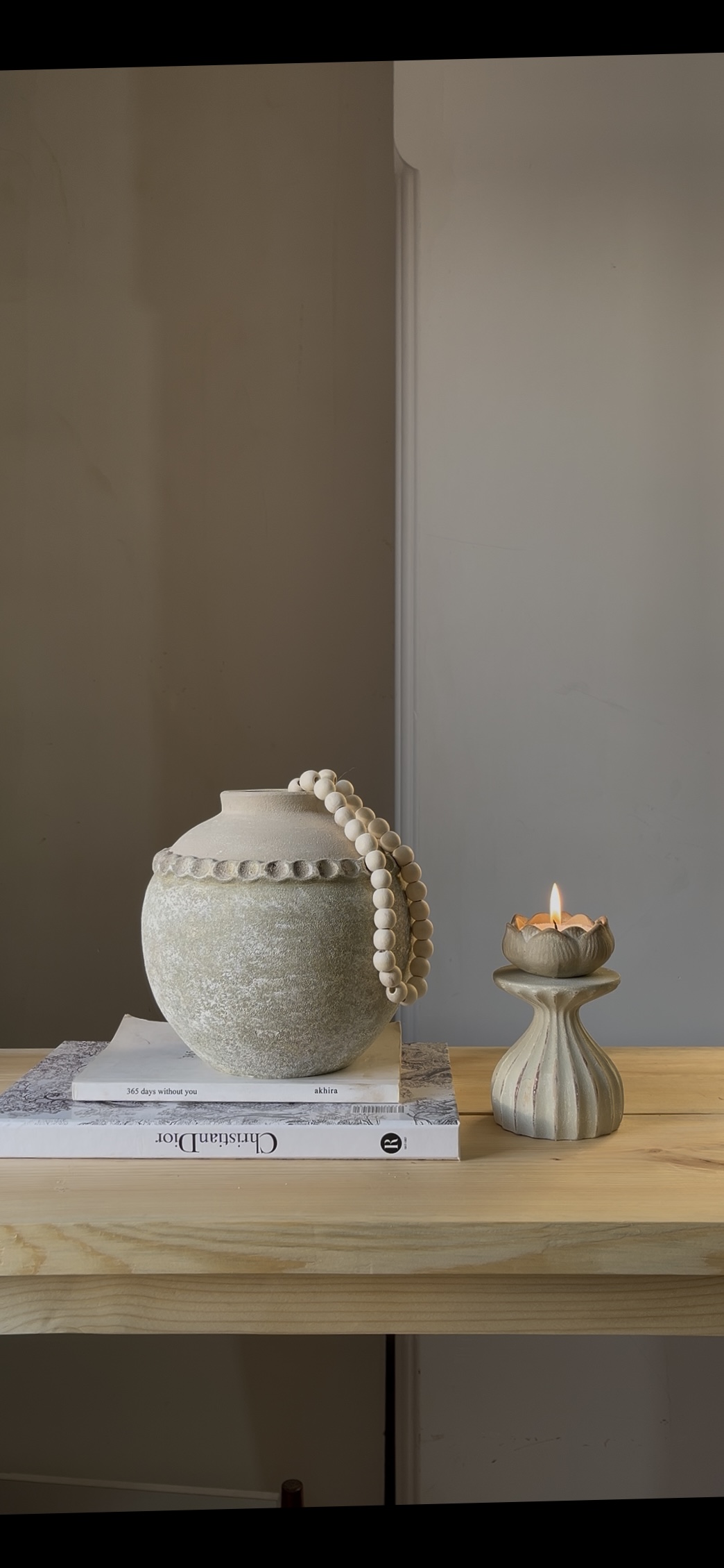 ست دکوری شامل گلدان و جاشمعی و پایه شمع